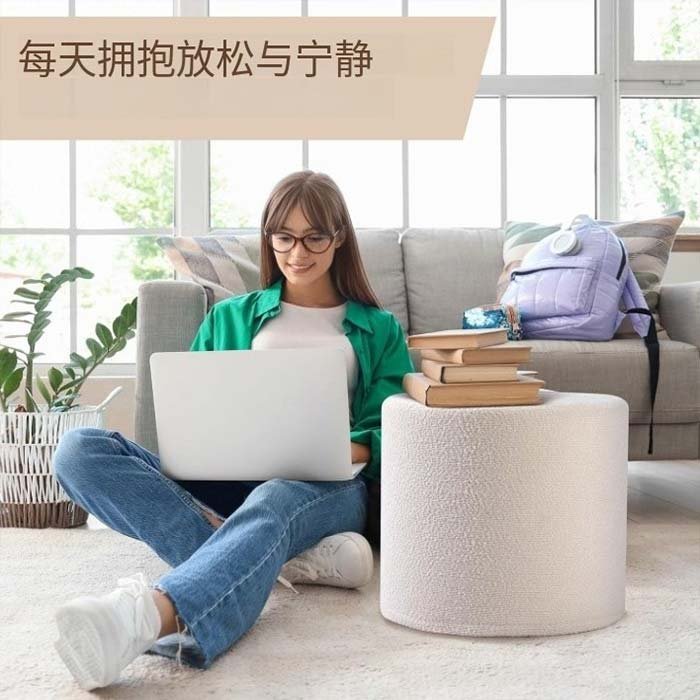 This lazy-style footstool is practical and considerate. In daily homelife, it is an excellent helper for relaxation. Just like in the picture,when you feel tired from work or study, you can put your feet on it torelieve leg pressure.lt can also be used as a temporary small stoolto provide convenience for guests, or to place items and decoratethe space. lt easily fits into scenes such as the living room and bed-room, adding comfort and convenience to home life